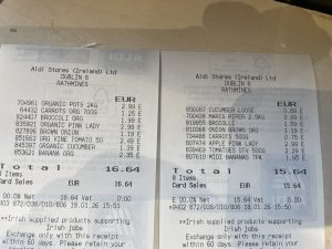 In Aldi, of the 12 items on our list, only eight were available as organic at the time of shopping. For those eight products, the total cost was €16.64 for organic, compared with €15.54 for conventional produce—a difference of just €1 for potentially meaningful benefits.